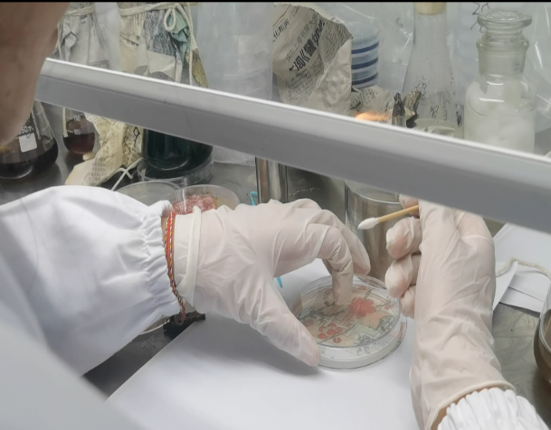 參賽同學(xué)在培養(yǎng)皿上繪圖過程
