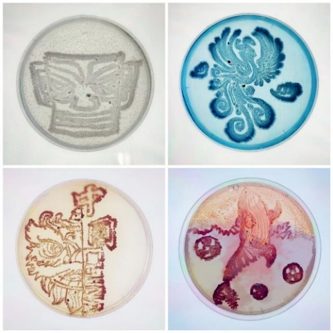 同學(xué)們發(fā)揮創(chuàng)新精神,利用所學(xué)微生物基礎(chǔ)知識,運(yùn)用各種各樣的菌種,于一方天地之中繪出了一個個奇思妙想的世界,呈現(xiàn)出了豐富多彩的微生物作品。